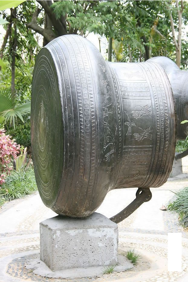 銅鼓1985年5月18日,在距中渡鎮(zhèn)2千米的石灰弄挖鐵礦時(shí)發(fā)現(xiàn)。鼓面直徑66.6厘米,高52.5厘米,周圍有4只青蛙,兩匹載著勇士的戰(zhàn)馬,鼓面和四周均有水波紋,回旋紋,草紋圖案,經(jīng)有關(guān)部門初步鑒定,系西漢時(shí)期銅鼓,今存自治區(qū)博物館。