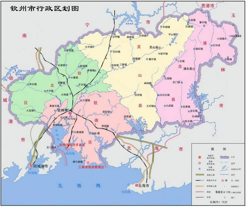 欽北區(qū) 面積2217平方千米,人口720442,政府駐欽州灣大道156號,下轄3個街道、11個鎮(zhèn)