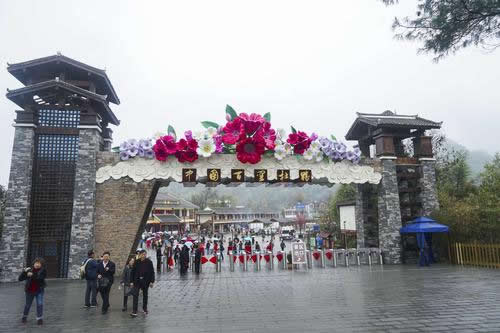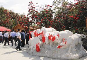 金坡祭祀花神主題園,這里神奇古怪的雕刻,講述了遠(yuǎn)古的彝山人祭祀花神的傳統(tǒng)習(xí)俗,展現(xiàn)了從古至今這里各族人民崇拜花神,敬供花神,祭祀花神的生動(dòng)傳承寫(xiě)照,高處有花神瑪依魯?shù)膲,位前有九種絢麗不同的顏色的杜鵑花,壇前有三牲祭祀貢品。有擊鼓手在擊鼓,旁有千里眼、順風(fēng)耳在觀察東西南北天象,聽(tīng)聞四面八方民情。