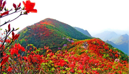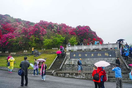 百里杜鵑風(fēng)景名勝區(qū),冬無(wú)嚴(yán)寒,夏無(wú)酷暑,暖溫帶濕潤(rùn)季風(fēng)氣候,年平均溫度11.8°C,年降雨量為1150.4mm。生長(zhǎng)在高海拔、低緯度的杜鵑花,暮春三月,竟相怒放,繁花似錦,姹紫嫣紅。