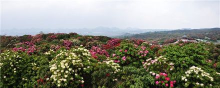 初步查明,百里杜鵑風(fēng)景區(qū)有馬纓杜鵑、大白花杜鵑、水紅杜鵑、露珠杜鵑等41種,占世界杜鵑花5個(gè)亞屬中的全部;ㄉ鄻,絢爛生輝。每年3月到5月次第開(kāi)放,百里花山色彩繽紛,猶如廣袤的錦緞華章鋪山蓋嶺,百態(tài)千姿。被譽(yù)為“地球彩帶、世界花園”。