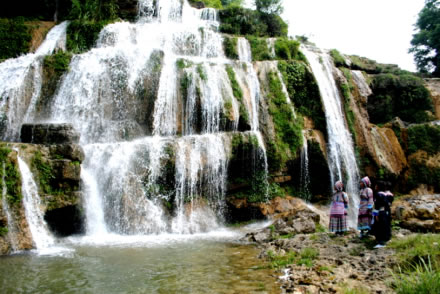 這里離米底河瀑布約一公里,突然泄入約500米的溶洞。經(jīng)過(guò)天生橋、天窗眼又流進(jìn)“摩天大樓”下變?yōu)榉,這里呈現(xiàn)的是只聞其聲、不見(jiàn)其影,然后從一線天大峽谷涌出,頗有亂石穿空,驚濤拍岸的雄奇氣勢(shì)。