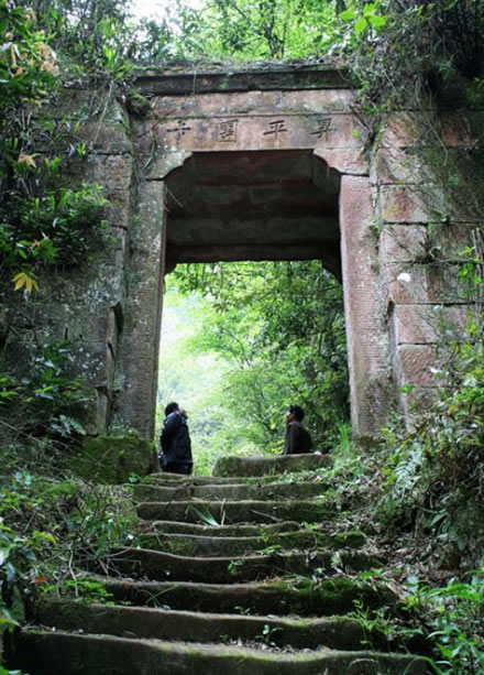 丙安村古寨門分東華門和太平門,分別位于丙安鄉(xiāng)古景社區(qū)東端、西端。清代所建,面積25平方米。為拱形石門。東華門高3.1米、寬2.2米、厚度為1.2米,另有木門兩扇用于關閉寨門之用,單扇木門寬為1.2米。太平門高2.4米、寬2.3米、厚度為1.5米,出寨門向西下坡是一條總長63米的石梯,每梯長1.7米、寬0.3米、高0.15米,右側(cè)有高為0.7米的條石護欄,呈階梯型向下延伸通向古碼頭。