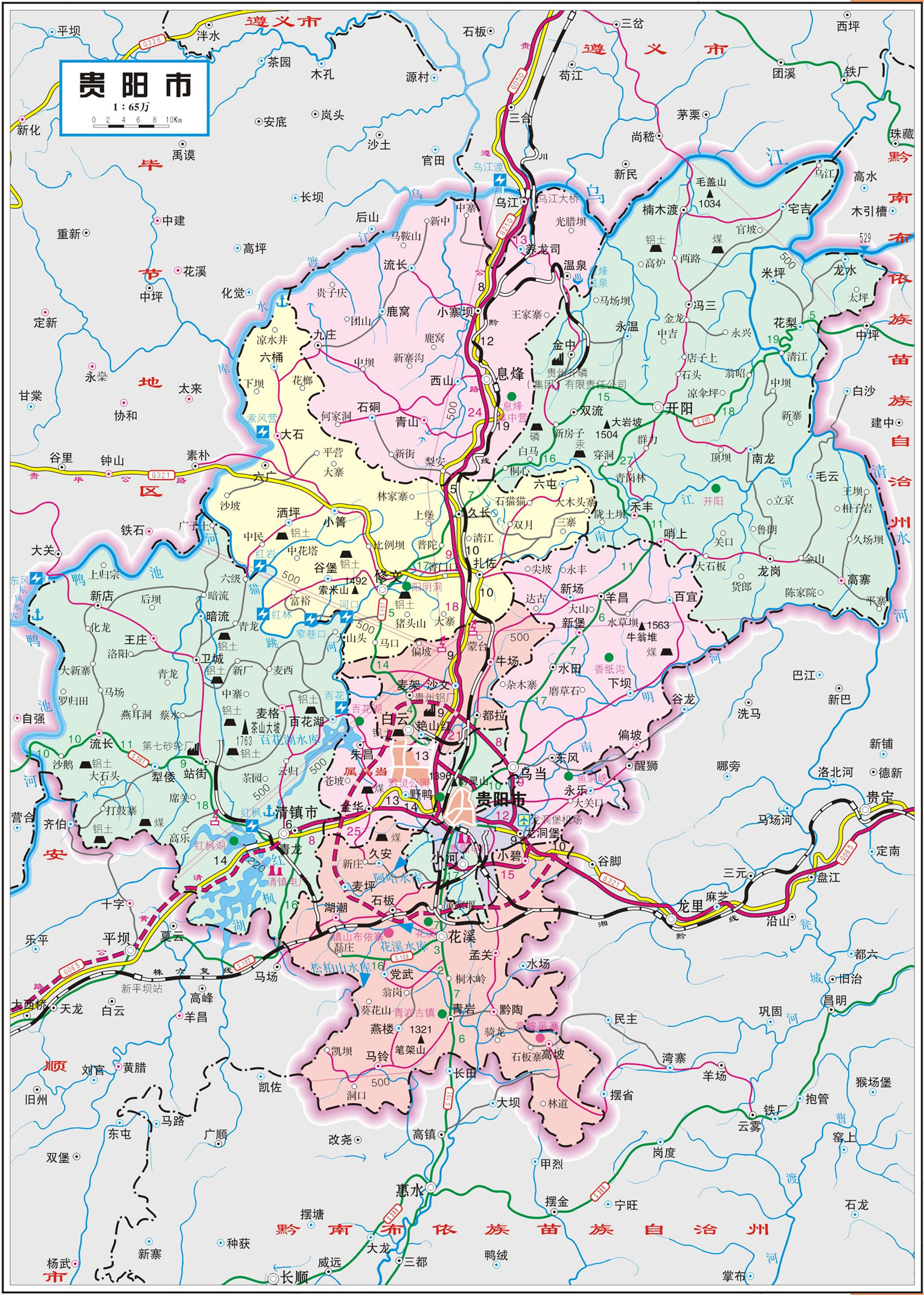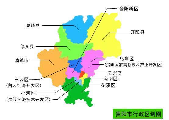 貴陽(yáng)市轄6個(gè)區(qū)、3個(gè)縣、代管1個(gè)縣級(jí)市: