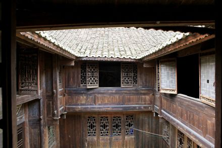 陶家院位于古城東北角,是清末木商陶明哲的住宅,為三間搭兩廂型建筑,四周圍高風(fēng)火墻,天井鋪青石板,窗扇均為雕刻精美的木板花窗,上面雕有精致的鳥獸,其中的鏤空玲瓏木板雕鏤更為奇特,書房?jī)?nèi)有壁畫,家具陳設(shè)完全,工藝精良,裝飾典雅,屋前建有門樓及防火石缸,是古城最有代表性和保存最完好的古民居建筑。