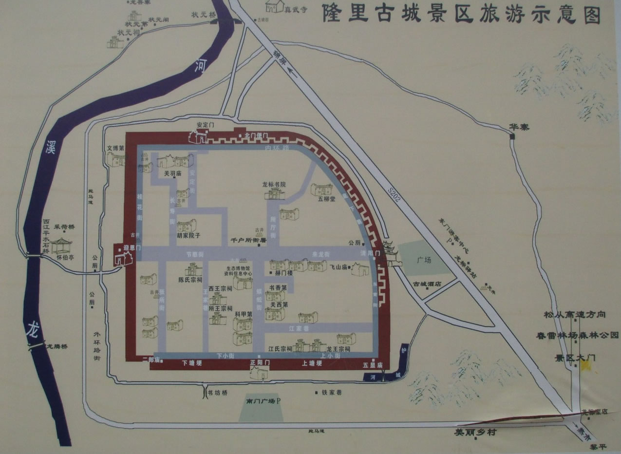 一日游:東門古城——龍標(biāo)書院——觀音堂——蜈蚣街——王氏宗祠——西門鼓樓——北門街——古城墻——陶家大院——東門鼓樓 |