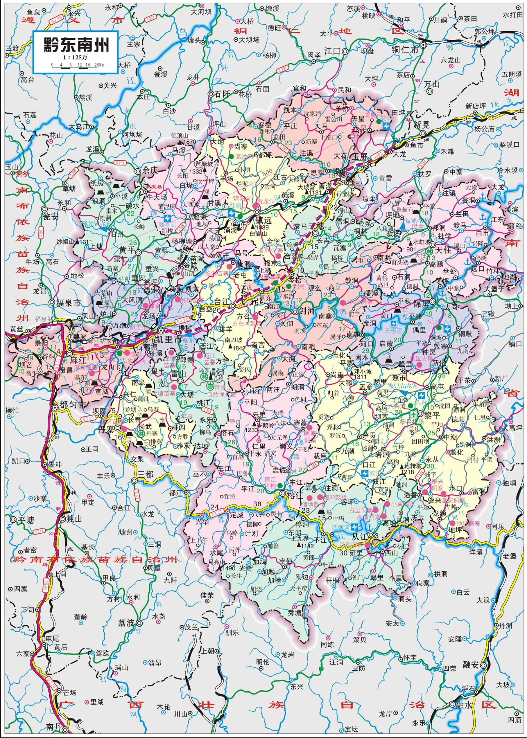 黔東南苗族侗族自治州轄15個(gè)縣,1個(gè)縣級市: