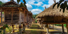 禾倉(cāng)是瑤山古寨標(biāo)志性的歷史古建筑,有的禾倉(cāng)已存在上百年。禾倉(cāng)建筑獨(dú)特,用四柱支撐,上層墊以木板,周圍用竹籬笆圍成圓形,頂上蓋以毛糙,這些禾倉(cāng)里面用來存放糧食和貴重物品,具有防潮、防盜、防鼠的功能。禾倉(cāng)下面通常會(huì)放置一些生產(chǎn)工具,或者供寨上的人們聚會(huì)聊天。