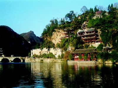 青龍洞古建筑群始建于明洪武二十一年(1388年),迄今已有六百多年的歷史了。青龍洞集佛教經(jīng)殿、道教廟堂、儒家書(shū)院、會(huì)館為一體的佛、道、儒、俗古建筑群,全國(guó)獨(dú)有的中原建筑與苗侗吊腳樓干欄式巧妙結(jié)合的古建筑群號(hào)稱“南方懸空寺”。