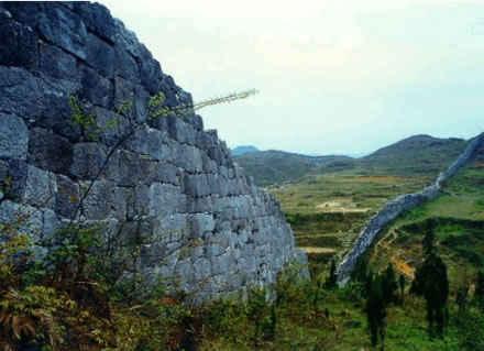 經(jīng)過(guò)600多年風(fēng)雨侵蝕,露出部分的石面全部呈青黑色,與城垣周?chē)|(zhì)各異。據(jù)專家考證,砌筑城垣所用石料,全從山下采集,鑿成料石,然后一塊一塊運(yùn)上山,整個(gè)工程浩大。