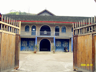 “和平村”是國(guó)民黨政府軍政部第二日軍俘虜收容所,設(shè)在鎮(zhèn)遠(yuǎn)衛(wèi)城十字街東側(cè)五云山下,原鎮(zhèn)遠(yuǎn)總兵署中營(yíng)衙門(mén)。前有巷道北通衛(wèi)城上北門(mén),面臨濞陽(yáng)河,后依五云山,有衛(wèi)城南門(mén)通金堡苗鄉(xiāng),方圓面積50000平方米。仍保留著當(dāng)年“和平村”半圓拱形大門(mén)和高高的圍墻,并恢復(fù)了當(dāng)年的“新生班”、“研究班”、“訓(xùn)練班”、“啞子室”、“職員室”。