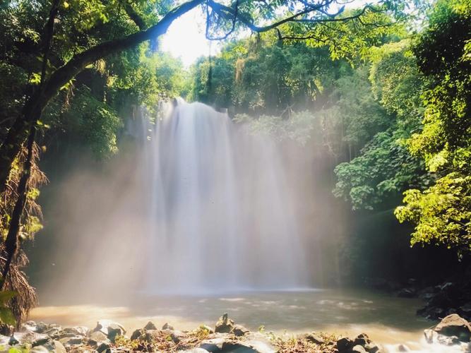 臨高古銀瀑布位于海南臨高縣皇桐鎮(zhèn)居仁村西部附近,距縣城以東20公里。史稱“古銀瀑布”,這一個(gè)大潭,有“三潭九曲”之美稱。瀑布系平川落差而致,落差20米,幅面20米,幅寬400平方米;周圍怪石林立,形狀各異,千姿百態(tài)。后面樹(shù)木茂密,宛如碧海,屹立在怪石上,枝繁葉茂,覆蓋如亭。錯(cuò)節(jié)盤(pán)根,透出倔強(qiáng)的生命力。處處花香鳥(niǎo)語(yǔ)不斷