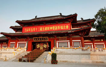 龍五爺財(cái)神殿位于三亞南山龍脈財(cái)穴之地,供奉著南海龍王第五子——圣衍,即“天下第一財(cái)神”——龍五爺。龍五爺財(cái)神殿由三個(gè)部分組成:一是招財(cái)大殿,開(kāi)示信眾招財(cái)進(jìn)寶;二是地宮財(cái)庫(kù),護(hù)佑信眾守財(cái),護(hù)財(cái);三是。五爺萬(wàn)佛閣,護(hù)佑信眾福祿傳世,富貴傳家。龍五爺財(cái)神招財(cái)大殿,開(kāi)示信眾如何求財(cái)?shù)姆ㄩT(mén)。在龍五爺財(cái)神殿的大殿之上,有八根財(cái)柱,分別代表了龍五爺開(kāi)示眾生如何正當(dāng)求財(cái)?shù)陌舜蠓ㄩT(mén),只有依五爺開(kāi)示,樹(shù)立了正確的八大財(cái)富觀,才能求財(cái)如意。