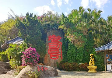 長(zhǎng)壽谷,也叫鰲山壽谷,位于南山東麓,其地貌依攀山勢(shì),呈谷狀縱伸。谷線全長(zhǎng)2300米,堪稱熱帶雨林奇觀。其間鳥(niǎo)鳴不斷、溪水長(zhǎng)流、林木郁郁蔥蔥、巖石突兀奇特。設(shè)計(jì)者巧用天然形勝,從不同角度,以“流動(dòng)”和“靜止”的狀態(tài)揭示著傳統(tǒng)“壽”文化的內(nèi)核,融匯福壽文化于熱帶雨林奇觀。其主要景觀包括:“無(wú)量壽佛”、“流水尊者”;著名書(shū)法家啟功先生所書(shū)之“壽比南山”巨大石刻、“百歲階”、“賀壽堂”等,無(wú)一不體現(xiàn)中國(guó)傳統(tǒng)文化中增福添壽的美好祈福。是老年游客必游覽駐足的景點(diǎn)。