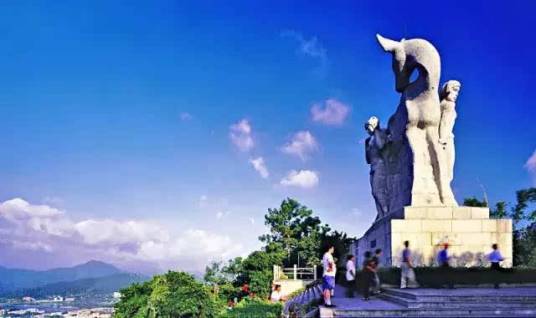 鹿回頭山頂公園位于三亞市南部3千米的海邊小山上,伸向南海、狀似坡鹿。這里三面臨海,四季山青,以其美麗的神話傳說聞名于世。主峰海拔275.1米。鹿回頭山頂已建設(shè)成一座美麗的山頂公園,并根據(jù)這個(gè)美麗的傳說在山上雕塑了一座高12米,長9米,寬4.9米的巨型雕像。三亞市也因此被人們稱為“鹿城”。