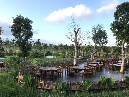 “稻田盛宴”是水稻國(guó)家公園稻田邊“長(zhǎng)出來(lái)”的原生態(tài)餐飲品牌,將中國(guó)五千年的“稻文化”“米文化”與當(dāng)?shù)亍袄杓椅幕苯Y(jié)合,打造特色田園風(fēng)情大型鄉(xiāng)村主題餐廳。圍繞中國(guó)“稻文化”、“海洋文化”主題,在椰樹下、稻田旁、鴨塘邊,滿足對(duì)“吃”的美妙想象。