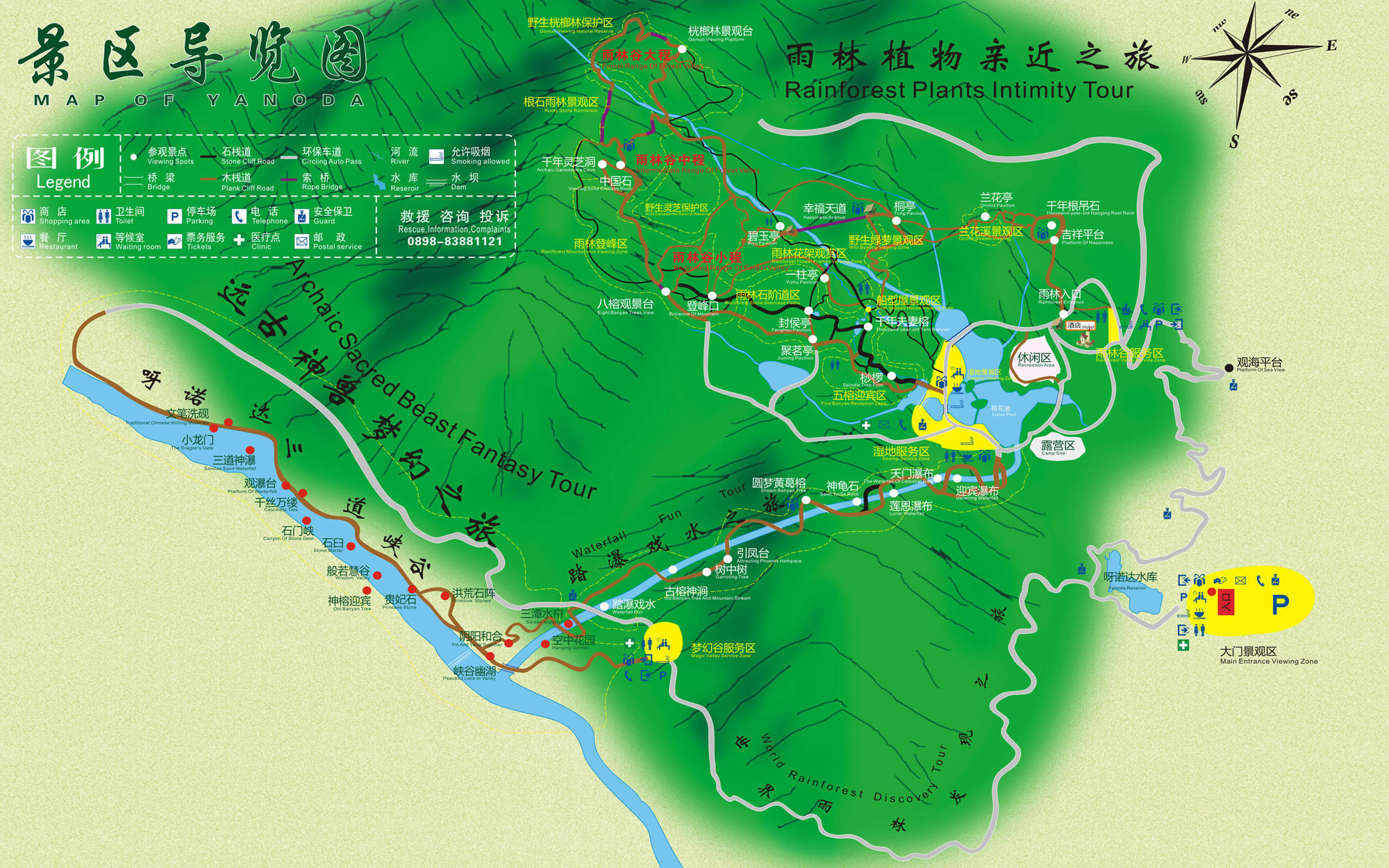 海南呀諾達雨林文化旅游區(qū)集熱帶雨林、峽谷奇觀、流泉疊瀑、黎峒風情、熱帶瓜果、南藥、溫泉多種旅游資源于一身。主要有生肖廣場、雨林谷、夢幻谷、三道谷、濕地等多個景觀區(qū),有呀諾達雨林、藥師峽谷、生肖廣場、啪魯?shù)弦巴馔赜枲I、呀呀呀熱帶果鄉(xiāng)、達達瑟黎苗博覽以及酒店、度假村等項目,是海南島五大熱帶雨林的濃縮,是具觀賞價值的熱帶雨林資源博覽館。