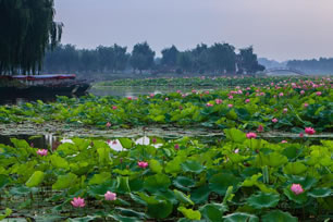 白洋淀荷花大觀園坐落在河北省濕地保護區(qū)安新縣白洋淀景區(qū)內(nèi),占地2000多畝,水域面積1560畝,薈萃了中外名荷699種,花的顏色有紅、黃、白、粉、淡綠等,花型有單層、雙層、多層,株型有小到可置案頭的碗蓮,有大到能負重幾十斤的南美王蓮。