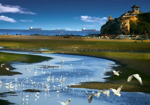 北戴河景區(qū)地處河北省秦皇島市北戴河區(qū)東部沿海,東北至鴿子窩公園,是著名的觀鳥勝地,被譽(yù)為"觀鳥的麥加"。這里有6600多公頃森林,50多畝濕地,戴河、恒河等入?谛纬傻哪酁a湖以及滯緩的河道,被國際濕地保護(hù)公約命名為"北戴河濕地",并受到國家保護(hù)。