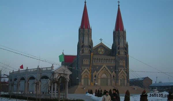 張莊天主教堂,歷史久遠,建筑宏偉,風格別具,中外馳名,有“華北第一堂”之稱。此堂位于縣城東張莊村,分東西兩個大院,占地共315畝。據(jù)歷史資料記載,公元1856年(清咸豐六年)5月,羅馬教廷決定從法國遣使會管理的北京教區(qū)劃一部分歸法國耶穌會管理,在河北東南部成立一個新教區(qū),叫直隸東南教區(qū),并委任上海教區(qū)法國耶穌會會士朗懷仁為第一任代牧主教。1861年3月,朗懷仁主教決定將直隸東南教區(qū)首府遷至獻縣,選定城東一公里處的張家莊(現(xiàn)張莊村)建立總堂,該教區(qū)位于東經(jīng)111度至115度,北緯35度至39度之間,它的北部和東北部是北京教區(qū),西部是直隸西南教區(qū),南部是山東教區(qū),南北約520公里,東西約120公里轄河間、大名、廣平三府,深、冀、景、開、磁五州及三十三個縣城及屬地教務(wù)。