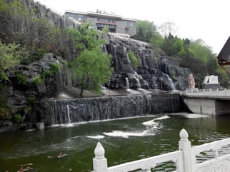 位于園內(nèi)英杰梁下,是南峪流域匯入漿水川的主要河道。原名南河溝,因抗大在此辦學(xué)期間,軍民同用一河水,故改名為軍民連心河。疊瀑?gòu)挠e橋---廣場(chǎng)段,全長(zhǎng)2000米,河寬15---30米,河中建有高0.8---1.5米攔河壩20道。