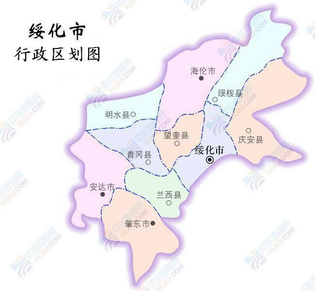 綏化市轄1個市轄區(qū)、6個縣、代管3個縣級市: