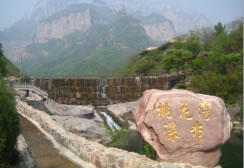 “紅石河”位于大瀑布源頭,由于海拔1100米,故又名“太行天河”。河床為紅石砂巖,光潔平瑩,碧水橫溢,紅綠相映,色彩斑斕,明麗如畫(huà)。這正是王維“明月松間照,清泉石上流”詩(shī)句的寫(xiě)照。有百年好合樹(shù)、百年老屋、觀音洞、回音壁、蘑菇石、黑龍?zhí)、仙女池、五彩泉等景點(diǎn)。