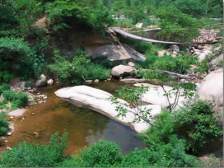 元寶潭元寶潭是畫(huà)眉谷景區(qū)的第一個(gè)景點(diǎn)。元寶潭是因潭中有一 個(gè)形似元寶的石頭而得名。此石是由斷裂破碎的花崗巖體經(jīng)長(zhǎng)年水流下切侵蝕而成的。關(guān)于這元寶潭還有一個(gè)動(dòng)人的傳說(shuō)。傳說(shuō)有盜寶者在山中盜得元寶外逃至此,被鎮(zhèn)山神指定住,寶落潭中。至今元寶仍在潭中,成為畫(huà)眉谷旅游的一道亮麗風(fēng)景。