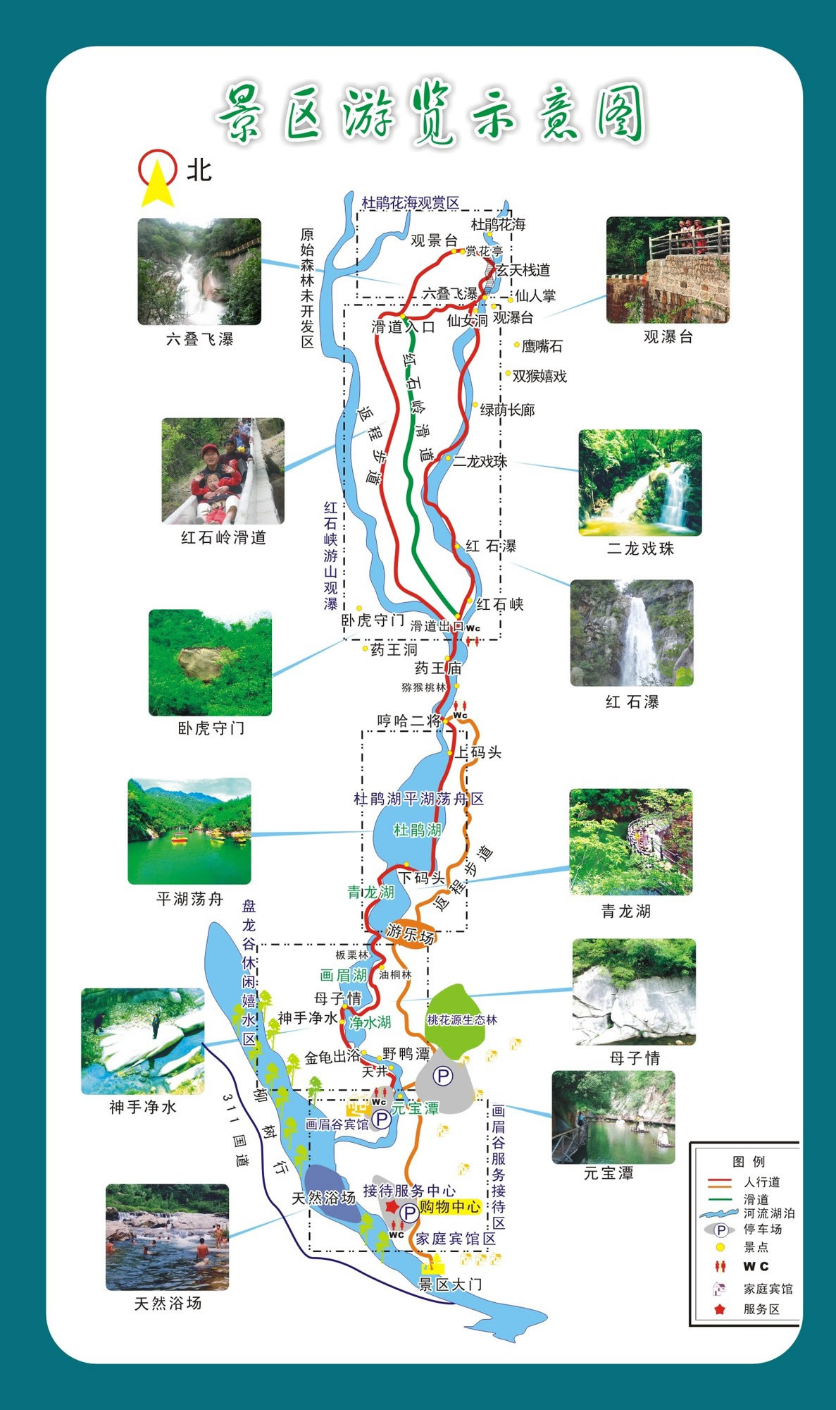 畫(huà)眉谷因有眾多畫(huà)眉鳥(niǎo)在此棲息繁衍而得名。景區(qū)中,奇峰、怪石、清溪、碧潭、幽峽、秀瀑、石洞、湖面、云海、紅葉、山花、野果、中藥材、珍禽異獸,原始森林,構(gòu)成了完整的風(fēng)景體系。各類(lèi)景點(diǎn) 100 余處,植被覆蓋率達(dá) 95% 。景區(qū)中有碧潭成串、基巖光滑,跌水歡歌的盤(pán)龍谷;碧波蕩漾,山清水秀,被譽(yù)為“袖珍三峽”的杜鵑湖;造型奇特、山峻澗深,巖石呈紅色的紅石峽:“飛流直下三千尺,疑是銀河落九天”的紅石瀑、六疊瀑;如火如荼、花香四溢的千畝杜鵑花海;古木參天,蔽云遮日的原始森林。