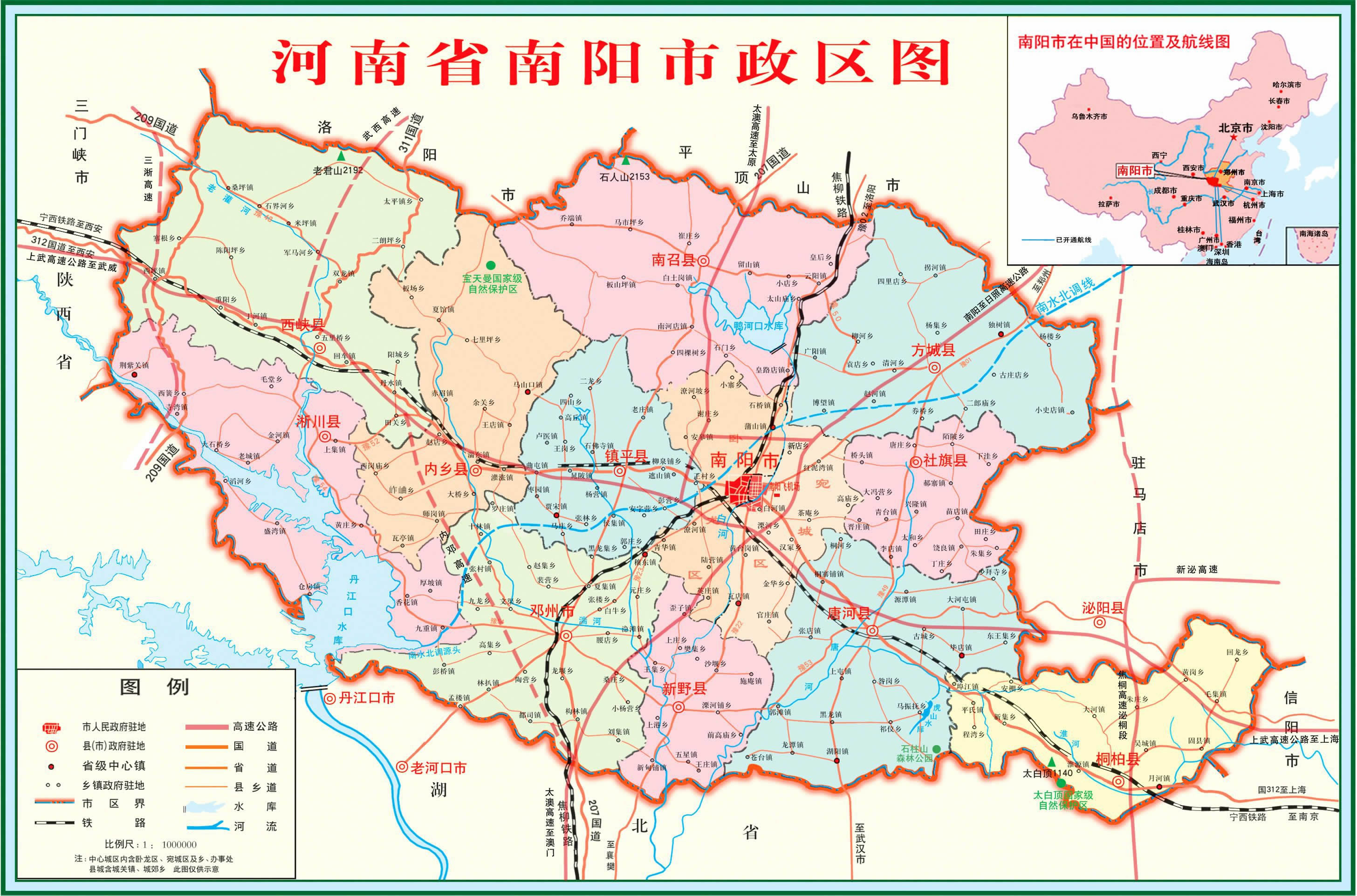 南陽市轄2個(gè)市轄區(qū)、10個(gè)縣,代管1個(gè)縣級市: