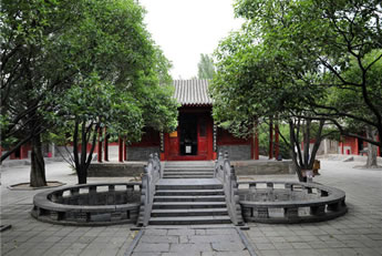 古代儒家倡導(dǎo)有道統(tǒng)就有治統(tǒng),因?yàn)椤爸谓y(tǒng)得道統(tǒng)而盛,道統(tǒng)賴(lài)治統(tǒng)而光!奔漓氲澜y(tǒng)三圣人,是嵩陽(yáng)書(shū)院的傳統(tǒng),在中國(guó)古代書(shū)院中,唯有嵩陽(yáng)書(shū)院保存此種祭祀形式。柱聯(lián)為清末政治家林則徐所作: “海納百川,有容乃大;壁立千仞,無(wú)欲則剛”。