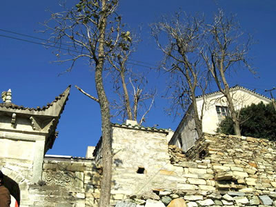 古寨蜿蜒起伏于主峰祈嗣頂,海拔582米處,全長5華里,占地面積約4.4畝。古寨區(qū)始建于南宋開元年(1259年),最早為烽火臺,清咸豐三年(1853年)為防太平軍加修炮樓,是一座名副其實用于軍事防御性古寨。其后,隨著宗教活動盛行,寺廟逐年興建,形成不少有神奇色彩的景點建筑。古寨區(qū)內有一天門、南天門、木蘭坊、二天門、三天門、金頂坊、玉皇坊、玉皇宮、三元宮、靈霄街、獅鼻洞等主要景點。