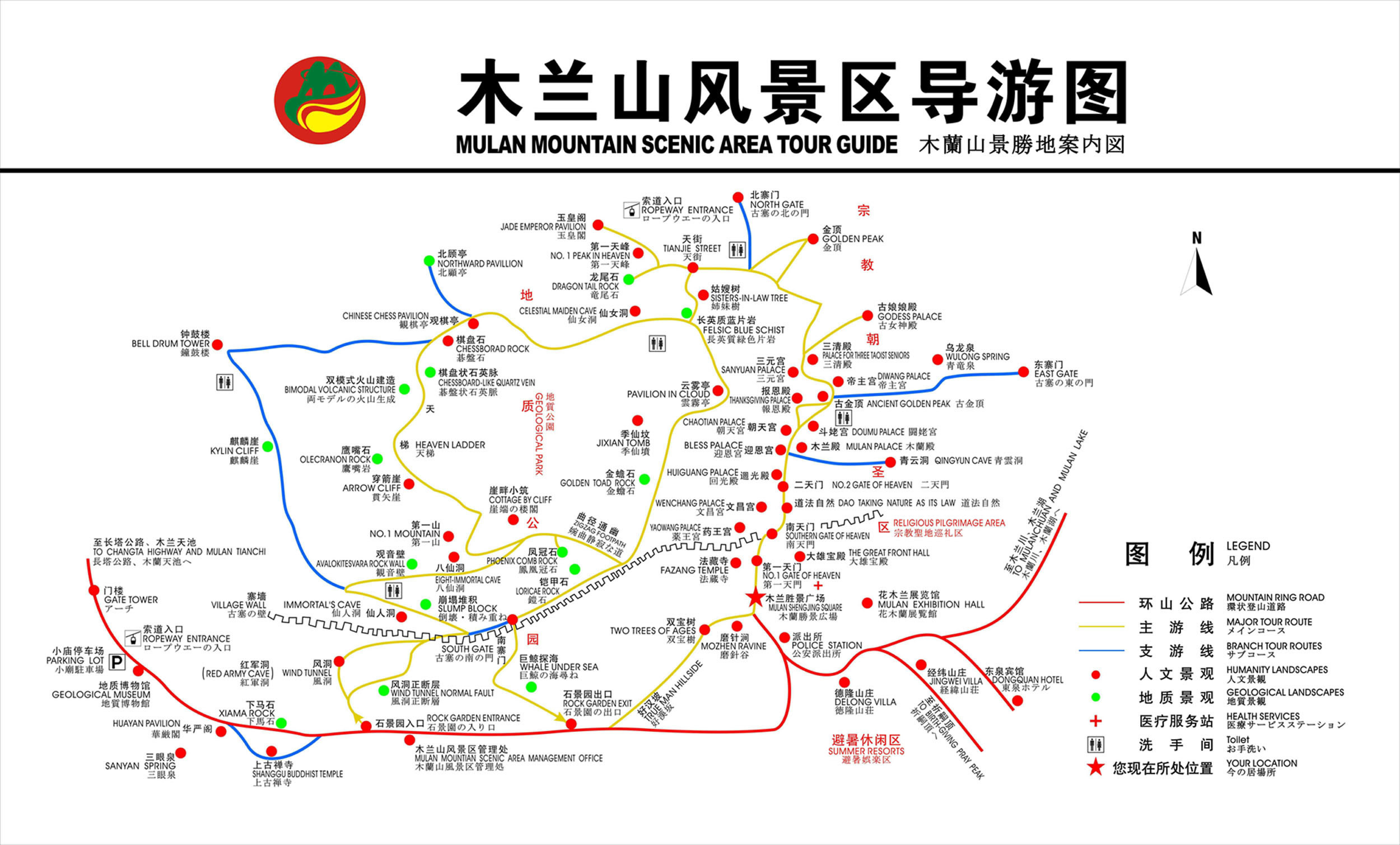 三天門5道寨門;有玄武殿、娘娘殿、木蘭殿、朝天宮、帝主宮等32殿。木蘭山風景區(qū)作為武漢市郊的風景游覽區(qū),按其地貌和環(huán)境特點,逐步建設古寨、石景、花苑、避暑四個小區(qū),以“春秀美、夏艷美、秋豐美、冬壯美”的迷人景致,迎接海內客人前來觀光游覽。