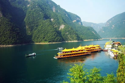 B線:游客中心→風(fēng)雨長(zhǎng)廊→時(shí)空隧道→鼓樂(lè)堂→土家風(fēng)情街→旅游碼頭→徒步游覽倒影峽沿途參觀四廊、四道四臺(tái)、過(guò)龍門(mén)等景點(diǎn)→乘船進(jìn)入主航道→船觀隔河巖大壩、仙人寨、環(huán)北島參觀游覽→返回游客中心