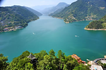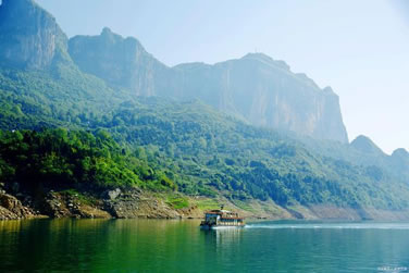 清江支流丹水,因其水淺,清澄得可見(jiàn)河床鋪滿的亂石,兩岸山巒起伏,郁郁蔥蔥,現(xiàn)成為游人漂流的絕佳去處。丹水最寬處有十幾米,最窄處僅四五米,大雨過(guò)后,河水水量較大,水流湍急,是漂流的好時(shí)候,但較危險(xiǎn)。2-3人乘坐一充氣皮筏從上游順流而下,在水面闊、水流緩處,可一邊蕩漿一邊仰望兩岸幽靜的景色,或低頭搜尋水底的小魚(yú)小蟹;而水面窄處,水流因亂石的阻礙變得浪花飛濺,駕著皮筏,一不小心,就會(huì)撞上大石頭,有時(shí)皮筏因水流太急而不可控制,那種緊張刺激的感受,是長(zhǎng)期生活在城市中的人們很難體會(huì)到的。與小三峽、神農(nóng)溪漂流顯著不同的是,小三峽乘機(jī)動(dòng)船,機(jī)器的噪聲,很難讓人靜心去欣賞其山其水的瑰麗,神農(nóng)溪是由纖夫拉纖,將“豌豆角”型木船拉至上游,然后由船工撐船漂流而下,游人只能仰望山的幽奇,水的清亮,卻不能親自感受駕舟乘風(fēng)破浪的驚險(xiǎn)刺激。