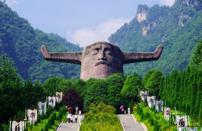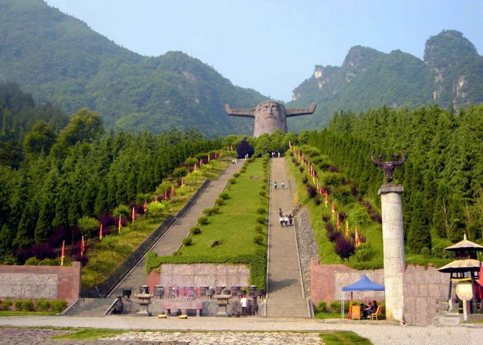 2002年通過(guò)國(guó)家質(zhì)量ISO9001和ISO 14000體系認(rèn)證,被評(píng)為國(guó)家4A級(jí)景區(qū),建成于1997年,是神農(nóng)架一個(gè)自然和人文相結(jié)合的景區(qū)。景區(qū)有特色地分為四個(gè)部分:古老植物園、千年杉王、神農(nóng)祭壇、購(gòu)物長(zhǎng)廊。祭壇內(nèi)神農(nóng)塑像高大雄偉,莊嚴(yán)肅穆,雙目微閉,似乎在洞察世間萬(wàn)物。它以大地為身軀,頭像高21米,象征中華民族在21世紀(jì)蒸蒸日上,寬35米,與它的高加起來(lái)共56米,象征著56個(gè)民族的大團(tuán)結(jié)。祭壇外圍的五色石代表著五行,即金、木、水、火、土,內(nèi)方外圓,即有天圓地方之意。祭壇的兩側(cè)用八組壁畫記錄著遠(yuǎn)古神農(nóng)氏的功德,即降牛以耕、焦尾五弦、積麻衣葛、陶石木具、原始農(nóng)耕、日中為市、穿井灌溉。八組壁畫以藝術(shù)的手法敘述了神農(nóng)氏的豐功偉業(yè),表達(dá)了子孫們的無(wú)限追戀。