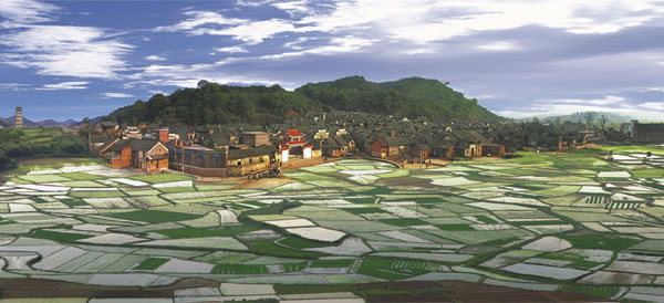 板梁古村落背靠象嶺,面臨溪水,其村落布局充分體現中國傳統風水學崇尚自然、奉行天人合一的自然格局。古村占地約3平方公里左右,現有人口2000余人,至今仍保留著連綿成片的湘南明清古民居建筑360多棟。全村同宗,分上中下三個房系,渾然一體,青石板街巷延綿千米,古民居、古祠堂、清泉、半月塘、 曬谷坪、古驛道、自然田園等有機排序,系統構建出“人與人”,“人與自然”、“人與社會”和諧共生的鄉(xiāng)村聚落環(huán)境特色。