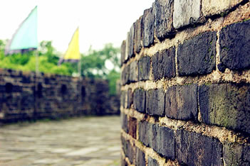2、月城城墻壁上有八個(gè)大炮洞,火炮隱置洞內(nèi),可避免敵炮的轟擊,士兵也比較安全。
