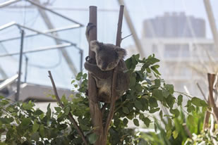 考拉館占地面積1400平方米,建筑面積600平方米,內(nèi)展廳、外展區(qū)、陽光溫室展區(qū)、體檢區(qū)、動物隔離治療區(qū)、桉樹冷藏室、桉樹處理區(qū)、人員進(jìn)出消毒池和更衣區(qū)和游客互動體驗區(qū)等功能區(qū)俱全。展廳具有溫度、濕度控制系統(tǒng),游客區(qū)和考拉生活區(qū)兩套完全獨立的新風(fēng)系統(tǒng)進(jìn)行環(huán)境控制,確保游客面空氣循環(huán)與考拉籠舍空氣循環(huán)不交叉。