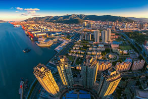 連云港港位于黃海之濱,中國沿海中部的海州灣西南岸,江蘇省的東北端,是中國沿海十大海港、全球百強集裝箱運輸港口之一,開通了50條遠(yuǎn)近洋航線,可到達(dá)世界主要港口。港口北倚長6㎞的云臺山,為橫貫中國東西的鐵路大動脈——隴海、蘭新鐵路的東部終點港。與韓國、日本等國家主要港口相距在500海里的近洋扇面內(nèi),是江蘇最大海港、蘇北和中西部最經(jīng)濟(jì)便捷的出?、新亞歐大陸橋東橋頭堡,以腹地內(nèi)集裝箱運輸為主并承擔(dān)亞歐大陸間國際集裝箱水陸聯(lián)運的重要中轉(zhuǎn)港口,集商貿(mào)、倉儲、保稅、信息等服務(wù)于一體的綜合性大型沿海商港。