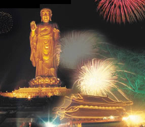 靈山大佛于 1997年11月15日落成開光,海內外高僧大德及各地信眾千萬余人親臨現(xiàn)場。是日慈云瑞靄籠罩大佛金身,至開光儀式舉行,祥云飄升,大霧竟奇跡般地散去,預示法輪常轉佛光昔照。