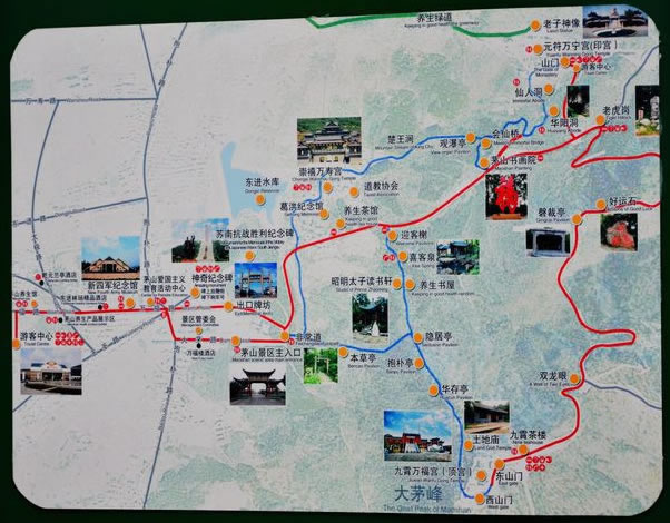 茅山,是環(huán)境優(yōu)美的風(fēng)景勝地。茅山自然風(fēng)光清新秀美,山區(qū)形勝獨(dú)特,枝繁葉茂,景色迷人,自古就有九峰、十九泉、二十六洞、二十八池之美景。這里的山不高卻秀雅,這里的水不深卻澄清。春游茅山,山林滴翠,草木芬芳。滿世界的嫩黃襯托這一處綠山,滿山間的野花給了這山林一路的狂想。薄霧輕如紗,夕陽(yáng)宛如畫(huà)。夏游茅山,綠樹(shù)成蔭,蔥蘢一片。你可以在綠樹(shù)掩映下的九曲十八彎上揮汗如雨,欲與大山試比高;你也可以朝觀日出,暮賞彩云。雨后初晴,但見(jiàn)一絲薄云在深谷幽林間繚繞,此時(shí)山上的樹(shù)木閃爍著猶如水晶般晶瑩的綠。秋游茅山,天高云淡,色彩斑斕。林間飄落一地的楓葉定會(huì)引起你無(wú)限的遐想,看蘆葦花在風(fēng)中搖曳著輕盈,聽(tīng)喜客泉水叮咚暢響,感受生命在不經(jīng)意的平淡中輪回。冬游茅山,銀裝素裹,霧松飄情。抑或暖陽(yáng)普照,滿山林充斥著蓄勢(shì)待發(fā)的理想。萬(wàn)簌俱靜中聆聽(tīng)那道家仙樂(lè),大有“花飛佛地三千里,人在瑤池十二層”之感。