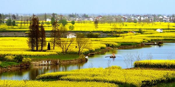 千島菜花風(fēng)景區(qū):位于江蘇省興化市缸顧?quán)l(xiāng)東旺村東側(cè),總面積近萬畝。 在泥土缺乏的澤國,先民們從水下取土,一方一方使其堆積如垛。千百垛田漂浮于水中,云蒸霞蔚,煞是壯觀。陽春時節(jié),金黃色的油菜花盛開于垛田之上,猶如一朵朵祥云飄舞于水面,又似一片片流霞散落在人間。人們置身于一望無際的千島菜花間,感受隨風(fēng)而來的醉人菜花香,有心曠神怡之感、美不勝收之慨。