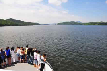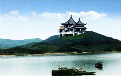 天目湖旅游度假區(qū),位于蘇、浙、皖三省交界處的江南歷史名城,溧陽市境內(nèi),距市區(qū)僅八公里。天目湖東臨煙波浩渺的太湖,北望工業(yè)發(fā)達(dá)的常州,西接六朝古都南京,南連蜿蜒起伏的天目山脈。天目湖旅游度假區(qū)開發(fā)建設(shè)于一九九二年四月,整個(gè)度假區(qū)的范圍為三百平方公里,其中包括沙河和大溪兩座國家級大型水庫。這兩大水庫地處天目山的余脈,從空中鳥瞰恰似兩顆明珠鑲嵌于溧陽大地。天目湖湖水來源于蘇、浙、皖三省交界的南山地區(qū),二百五十平方公里的河澗水匯集成湖,總庫容量為三億立方米,總長度為十三公里,水庫最深處為二十八米,平均深度為十米左右。湖區(qū)陸地部分為安山巖和石灰?guī)r,地形較為低緩。湖區(qū)群山環(huán)抱,湖水清冽。湖岸蜿蜒曲折,湖內(nèi)布滿大小島嶼。區(qū)內(nèi)奇花異草,色彩繽紛,野生動物,棲息繁衍,形成完整與和諧的生態(tài)系統(tǒng)。
