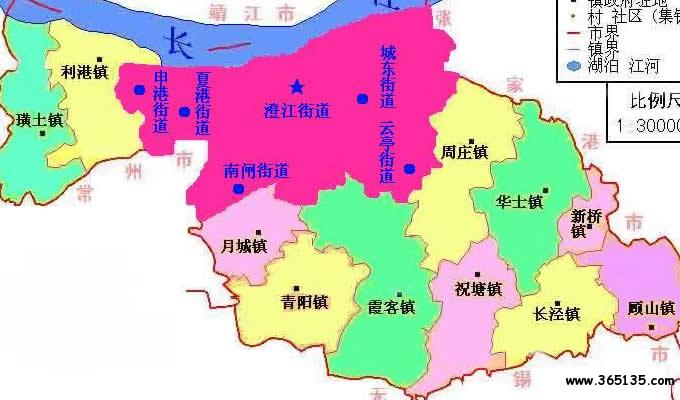 街道:澄江街道、城東街道、夏港街道、申港街道、南閘街道、云亭街道