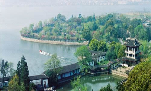 蠡園,離無錫市區(qū)10公里,坐落在蠡湖北岸的青祁村,面積8.2公頃,水面占3.5公頃。園以湖名,湖因園勝,曲岸枕水,秀麗明媚。錯(cuò)落在綠樹花影中的亭廊橋榭,散發(fā)出水鄉(xiāng)園林的特有風(fēng)姿。