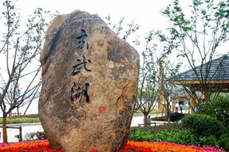 郭璞墩位于環(huán)洲西端。存石亭一座,仙墩置石一塊。是玄武湖地勢最高處。郭璞墩為東晉著名文學家、科學家郭璞的衣冠冢。郭璞景區(qū)建設(shè)以東晉時期為歷史背景,體現(xiàn)六朝風格,沿軸線建設(shè)了郭璞雕像、不老門、等景觀,彰顯郭璞仙墩古樸隆重之氣。