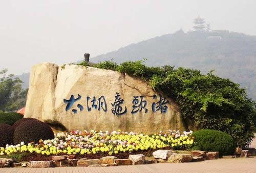 無錫市黿頭渚景區(qū),位于江蘇省無錫市濱湖區(qū)黿渚路1號,橫臥太湖西北岸的一個半島,占地面積5.39平方千米,因巨石突入湖中形狀酷似神龜昂首而得名,是太湖風(fēng)景名勝區(qū)(國家重點風(fēng)景名勝區(qū))的主景點之一。民國五年(1916年),無錫市黿頭渚景區(qū)始建;1949年 中華人民共和國成立后,無錫市人民政府接管,并成立“黿頭渚公園”。詩人郭沫若的“太湖佳絕處,畢竟在黿頭”的詩句贊譽。