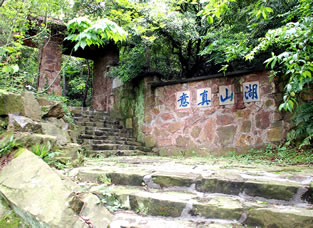 黿頭渚牌樓建于1973年,是前黿頭渚風(fēng)景區(qū)的老大門,是無錫十八景之首“黿渚春濤”的序幕!包x”是形似海龜?shù)囊环N動物,“渚”是指三面臨水的小陸地,因為它狀如黿頭而叫黿頭渚。門樓背后刻有“山輝川媚”4個大字,點出了這里“山不高而秀雅,水不深而遼闊”風(fēng)景的特色。大道前面,有300米的杜鵑坡,杜鵑花是無錫市的市花,清明時節(jié)樹叢、林下、溪邊的杜鵑花開遍山野,映的滿山都是紅色。兩邊是香樟樹,它是無錫的市樹。