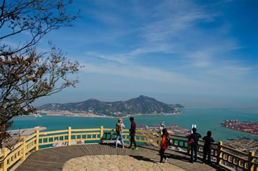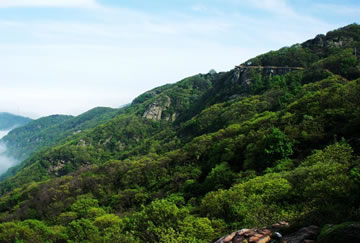 蓬壺仙境—二桅尖位于后云臺山北麓,隔鷹游海峽與連島對峙,緊鄰大桅尖,海拔503.7米。這里山勢雄峻、重巒疊嶂,山海相連、峰高海闊,海波與山色相映,水汽嵐光、變幻莫測,云蒸霞蔚、氣象萬千,是展示連云港東方大港、山海風(fēng)光的精華所在。主要景點(diǎn)有:“海天一覽”、“一線天”、“迎曙峰”、“凌空踏浪”、“云中漫步”、“云臺神鷹”、“神龜探!、“云臺冰瀑”、“鐵血峰臺”等。其中,“云臺鋪!、“曙峰旭照”、“海市蜃樓”等獨(dú)特景觀,久負(fù)盛名。景區(qū)容“雄、奇、險(xiǎn)、幽、秀”于一體,集“山、海、港、城、島”于一覽,被譽(yù)為江蘇省獨(dú)一無二的“山海奇觀”。